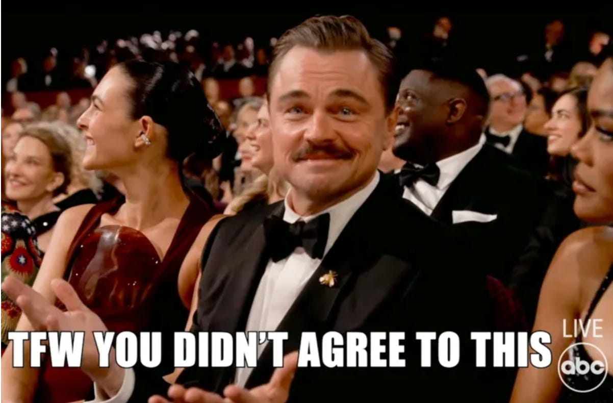 You were more likely of late to find a think piece about the rise of dad bods featuring Leo on a yacht than swooning over him, despite Leo being the source of some of the Internet’s most legendary memes. But that all leads to this year when Leo was spotted actually havin’ a laugh at the Golden Globes. We’ve barely seen the man out of a covid mask and a trucker cap in years, so the funny moment quickly went viral and he became, yes, a meme, but as himself, not in character. And this joviality stuck.